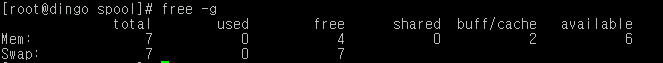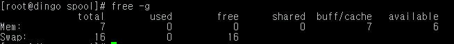 요청한 것(16G)과 달리 swap size가 부족(7G)하다.