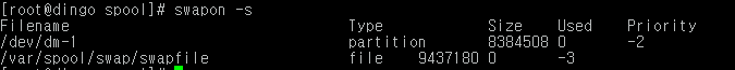 # swapon -s